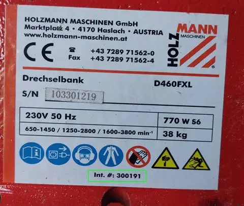 - Pour tour à bois dont le numéro Int. # = 300199