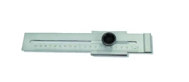 - Cette jauge en acier finition chromé mat dispose d’un bouton de serrage pour fixer la mesure une fois la cote définie et de graduation en millimètre qui permettra d’effectuer tous les travaux de mesure et de marquage tels qu’un simple trait de crayon continu, une mesure de profondeur, une mesure répétitive, un traçage des tenons, coupes de finition la scie etc.