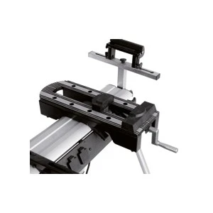 - Bras télescopique gradué, équipé d’une servante à rouleau réglable en hauteur, avec possibilité de relever une butée pour le travail en série. L’extensibilité va de 1635 à 2900 mm.